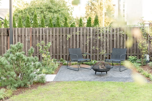 Užsakovas norėjo funkcionalios ir jaukios kiemo erdvės, kurioje būtų gera leisti laiką. Joje turėjo tilpti gyvatvorė ir dekoratyvus gėlynas privatumo jausmui sukurti, kiemo priežiūrą palengvinančios inžinerinės sistemos, sūpynės vaikams, mobili laužavietė, nauja terasa ir sandėliukas daiktams laikyti.