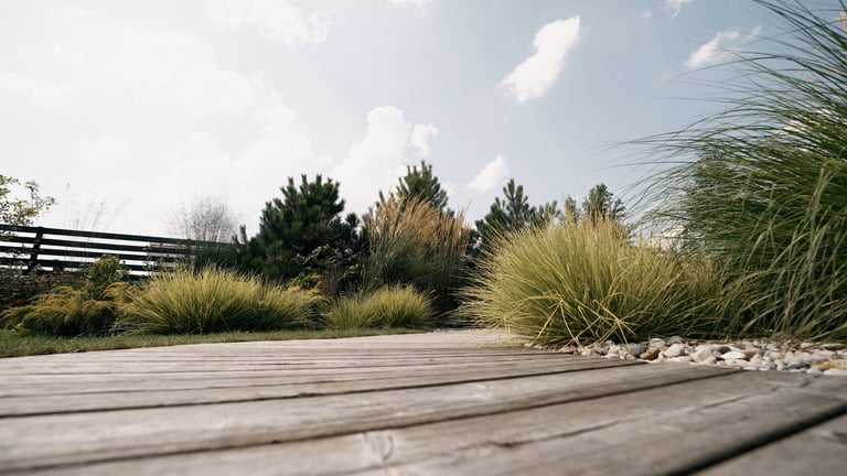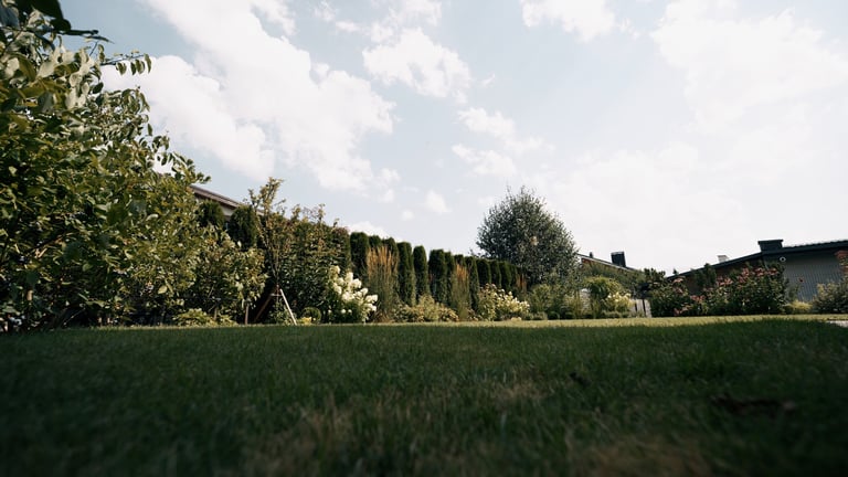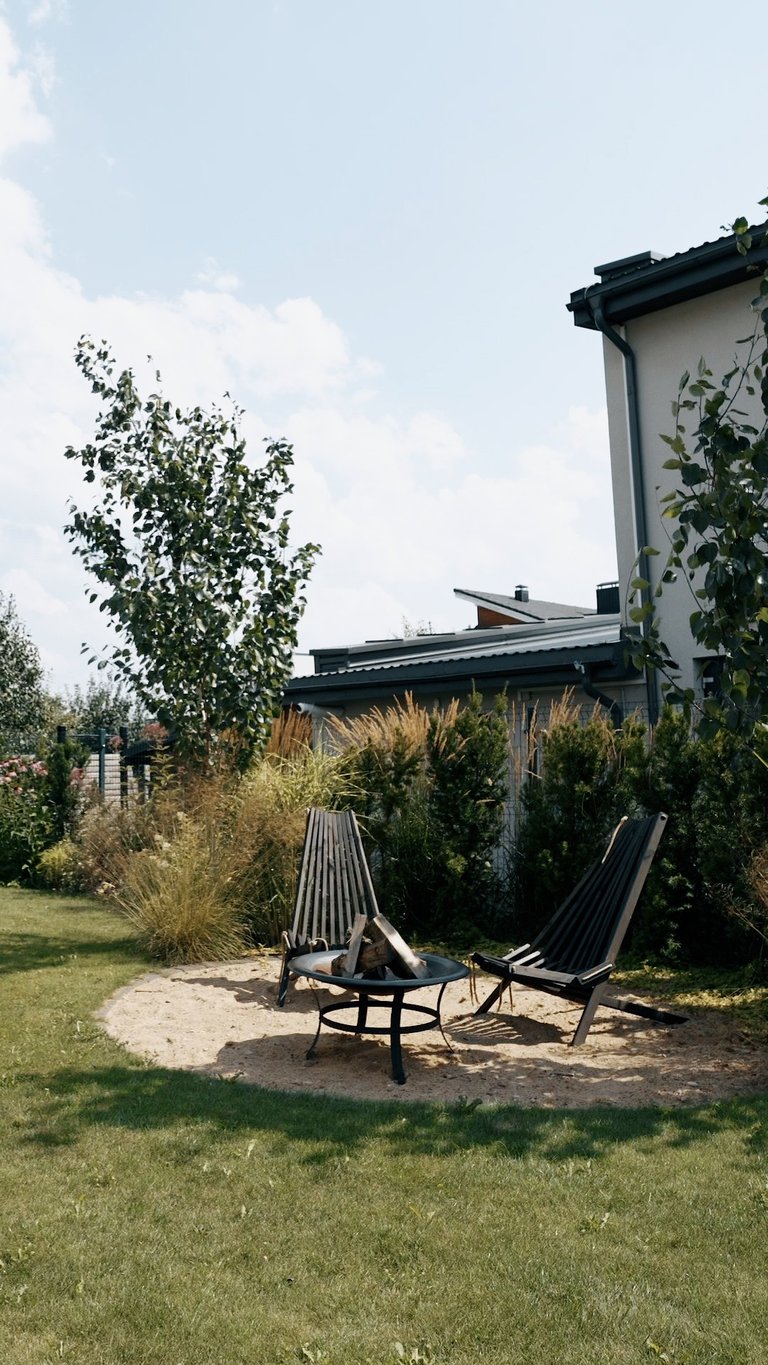 Tuščios erdvės aplink namą – esminis užsakovo galvos skausmas. Noras ir tikslas buvo ne tik užpildyti erdves, bet ir turėti funkcionalias zonas: pavėsio erdvę karštoms vasaros dienoms, vietą nešiojamai ugniaviete, atskirą zoną vaikų žaidimams, vietą pakeltoms lysvėms, vaiskrūmiams ir vaismedžiams, vietą sandėliukui bei numatyti, kur ateityje galėtų būti įrengta jacuzzi. Papildomas užsakovo pageidavimas – kad sklypo priežiūra neatimtų per daug laiko.
