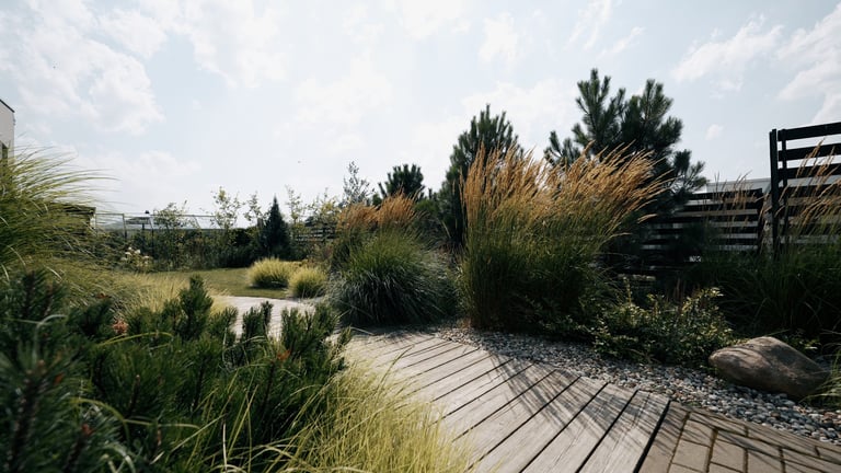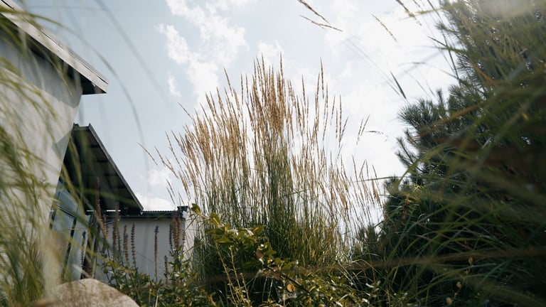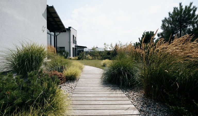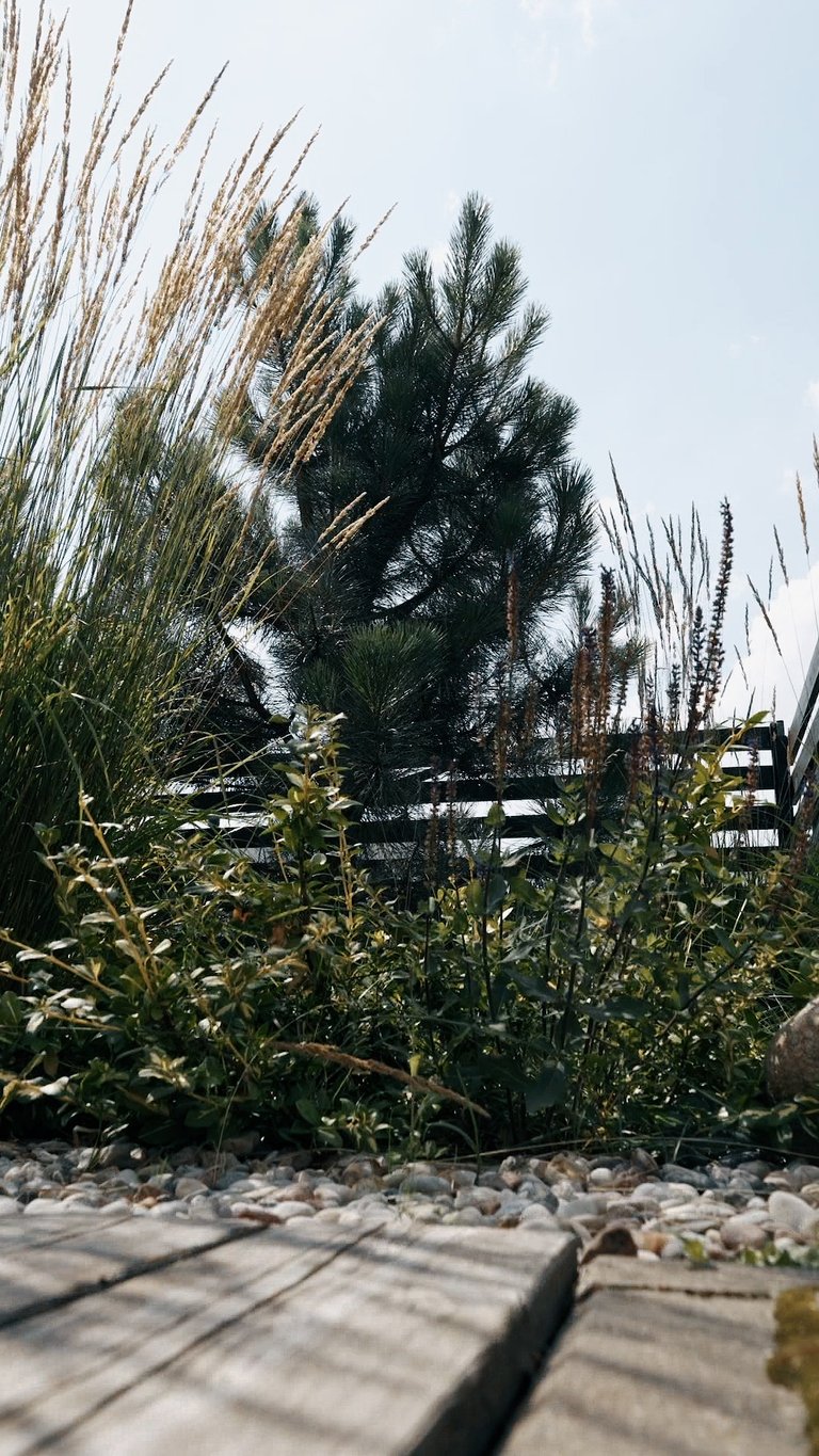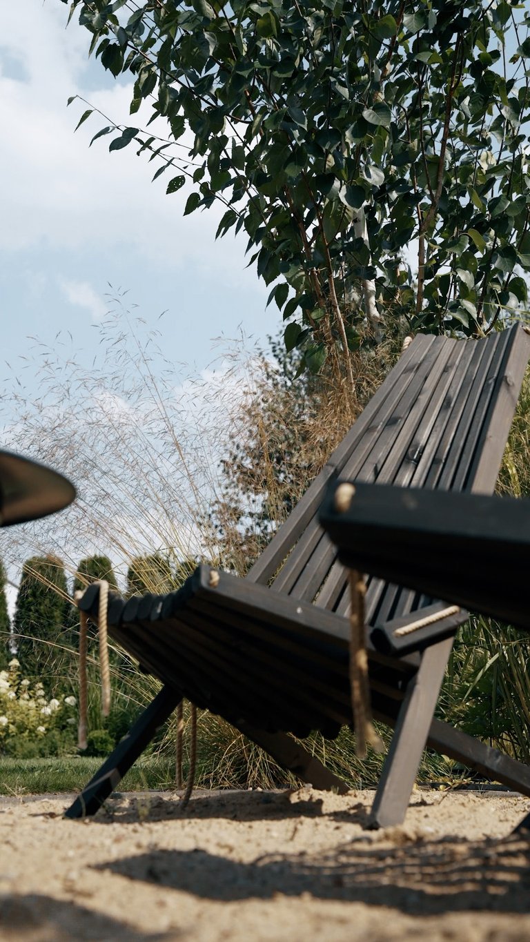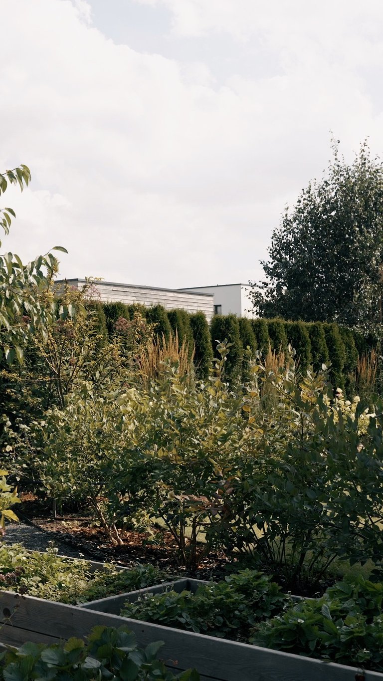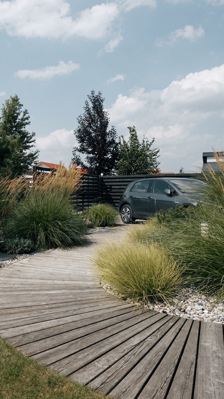 Visų pirma, sklypas suskirstytas į keturias gana aiškiai apibrėžtas funkcines zonas – reprezentacinę, poilsio, daržo ir techninę. Visas zonas jungia kietosios dangos. Reprezentacinėje zonoje savo vietą atrado X pušys – jos ne tik matomos pro pagrindinius namo langus, suteikia privatumo, sulaiko vėją, bet ir puošia sklypą visais metų laikais. Dalis sklypo perimetro skirta gyvatvorei. Tačiau ji įrengta ne ištisai, o atsikartojančiomis dalimis – ten, kur labiausiai reikėjo uždengimo. Tarpuose tarp gyvatvorės įterpti kiti augalai, ne tik suteikiantys jaukumo ir lengvumo, bet ir atliekantys laisvo formos gyvatvorės funkciją. Pavėsio zonoje savo vietą atrado kukmedžiai ir beržai. Pagrindas čia – birus smėlis, tad šią zoną galima išnaudoti tiek nešiojamai ugniavietei, tiek kaip vaikų žaidimų erdvę. Pavėsio, poilsio kampelis šilauogių krūmais atskiras nuo daržo zonos, kurioje pasodinti vaismedžiai ne tik džiugins gyventojus derliumi, bet ir suteiks sklypui daugiau struktūros ir, žinoma, papildomų pavėsio vietų. Be vaiskrūmių daržo zonoje įrengtos pakeltos lysvės daržovėms ir prieskoninėms žolelėms auginti. Visai šalia daržo zonos – sandėliukas įrankiams bei vaikų žaislams – viskas vienoje, patogioje vietoje. Užsakovų gyvenimui palengvinti, sklype įrengtos automatinė vejos ir želdynų laistymo, apšvietimo, lietaus vandens surinkimo ir panaudojimo daržo bei vaiskrūmių zonoje, sistemos. Galutinis rezultatas – funkcionaliai išplanuotas, jaukus, džiugesį keliantis, daug laiko priežiūrai neatimantis sklypas.